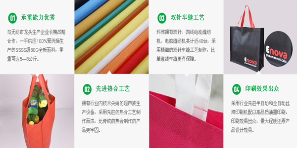4、無紡布環保袋工藝要求:車縫、超聲波熱合、覆膜等;