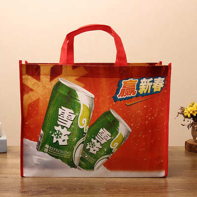 無紡布覆膜袋主要的特點就是可以印刷彩印的圖案在表面的一層pp膜上;還有一定的防水效果。