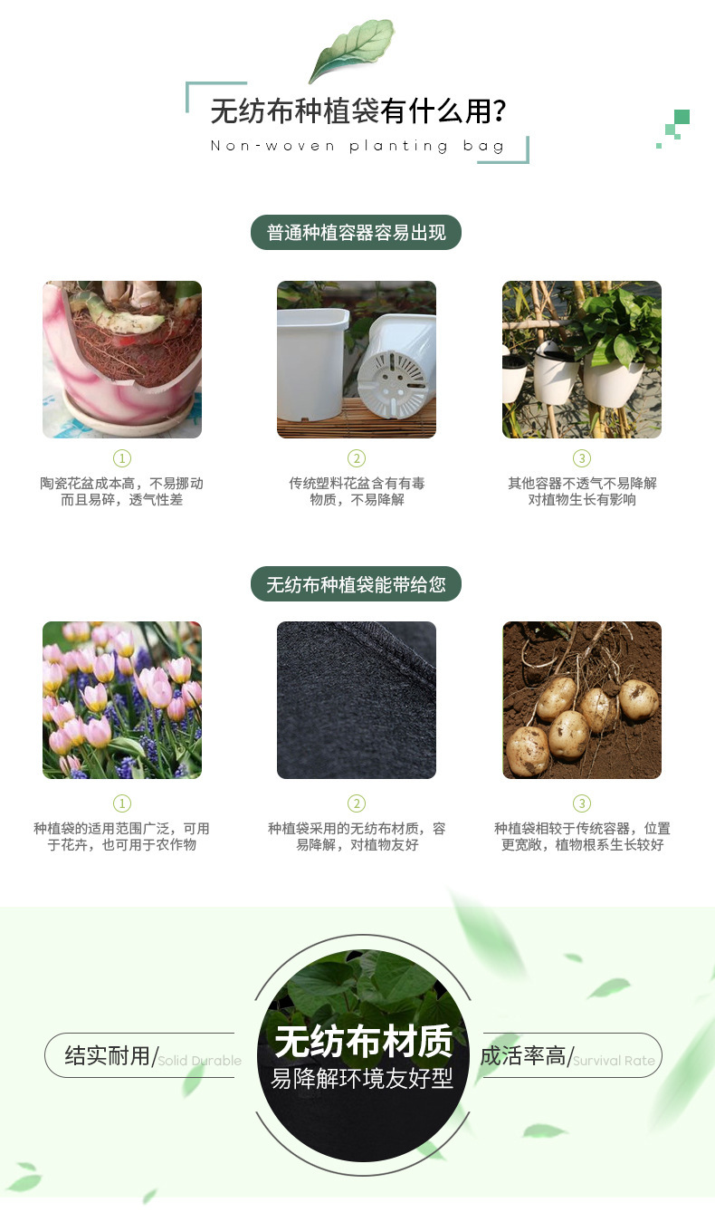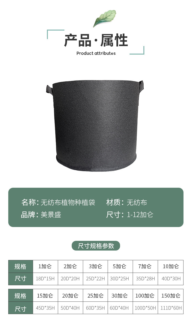• 植物種植袋跨境grow bag加厚無紡布美植物袋植物生長蔬菜育苗盆