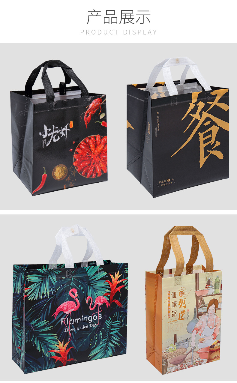 • 無紡布手提袋防水快餐外賣包裝袋彩色覆膜無紡布保溫袋