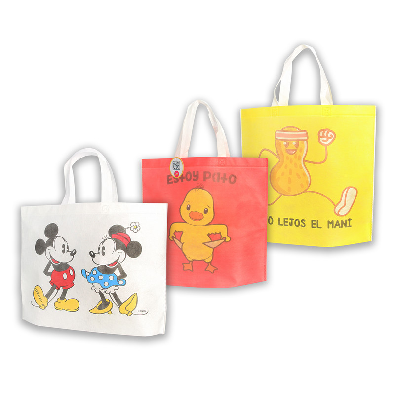 用這種辦法加工的制品一般叫復膜無紡布環保袋。此工藝分兩步,即先選用傳統的凹版印刷工藝將圖文印至薄膜上,再選用覆膜工藝將印有圖畫的薄膜復合在無紡布上。一般大面積五顏六色圖畫印刷的無紡布環保袋均選用這種工藝。其特點是印刷精巧,全程選用機器出產,出產周期短。另外產品具有極好的防水功能,制品的耐用性也較其它工藝出產的無紡布環保袋好。薄膜有亮光和亞光兩種可供選擇,亞光具磨砂作用。缺陷是與環保觀念有沖突,因薄膜很難降解。