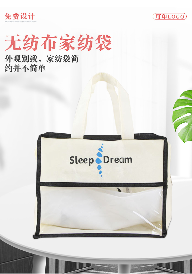 • 無紡布PVC拉鏈手提袋床上四件套被子毛毯家紡包裝袋可印logo