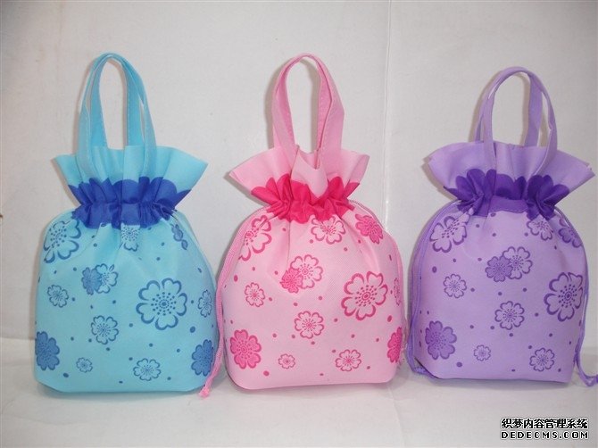 1、無紡布束口袋,價格相對便宜,制作簡單,廣告效果較好,可重復多次使用,在自然情況下,使用時間也就是三五年。關于無紡布束口袋的價格,主要是根據其規格、布料克重、印刷要求、對繩子的要求等來確定。 無紡布束口袋,主要用于產品外包裝、內包裝(如鞋子內包裝)禮品包裝、廣告宣傳,見上圖等。