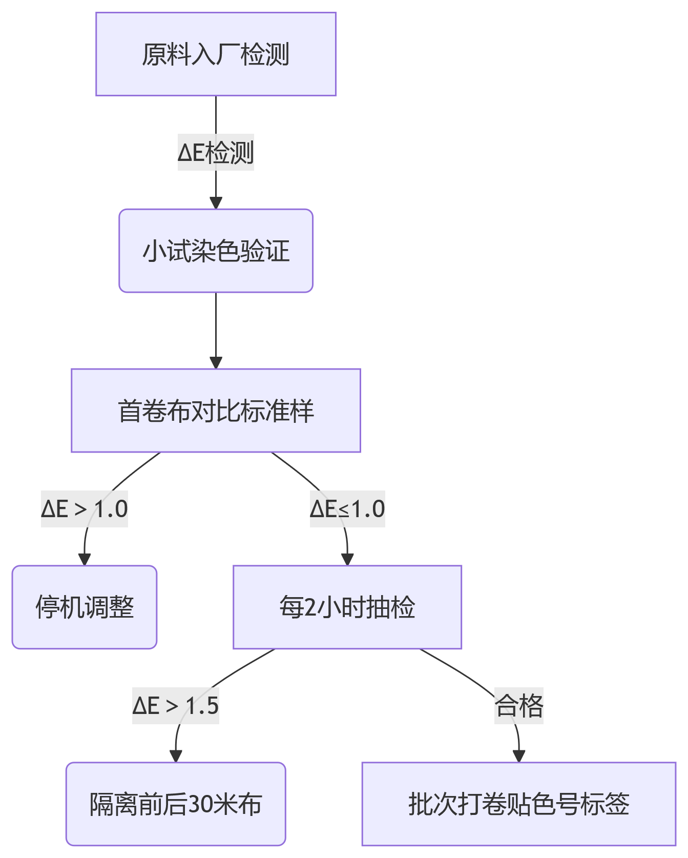 • 對每批新到原料進行小試染色驗證,確認色相合格后再投入量產。