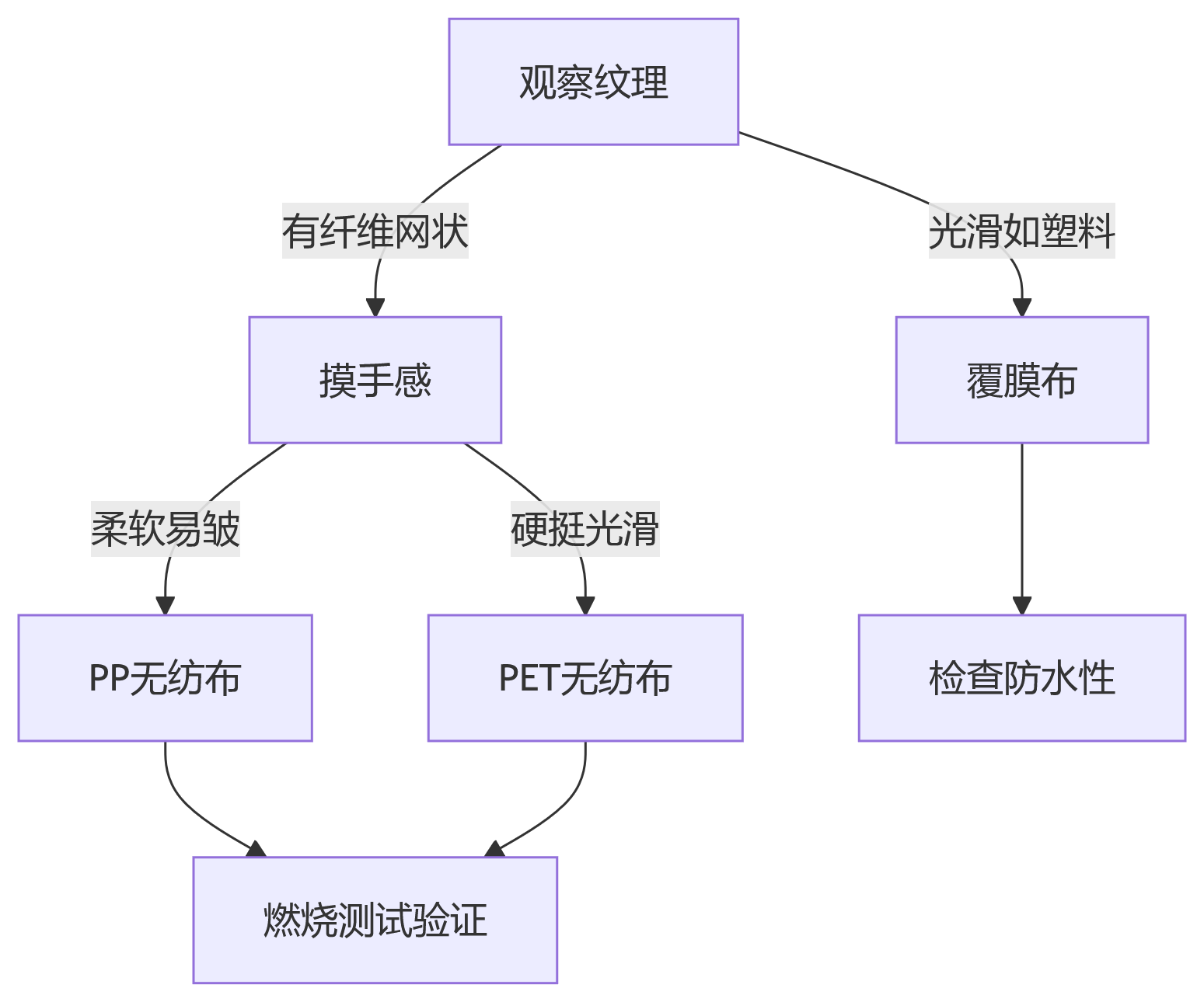 PLA(玉米纖維)無紡布: 手感類似PP但更細膩,燃燒時有區別(見下文)。